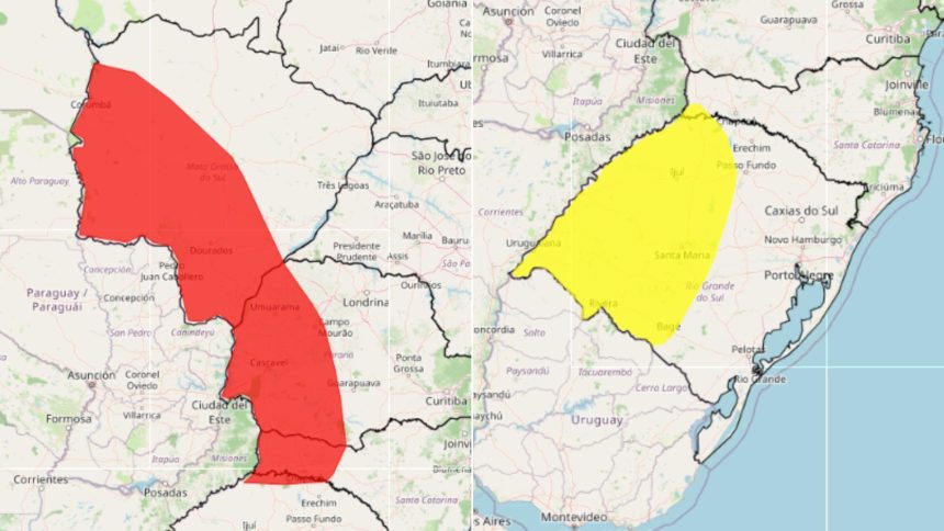 Santa Catarina, Rio Grande do Sul, Paraná, Mato Grosso do Sul e Mato Grosso enfrentam temperaturas extremas. As máximas ficarão 5°C acima da média por mais de cinco dias. O alerta permanece válido até sábado, dia 25 de abril.