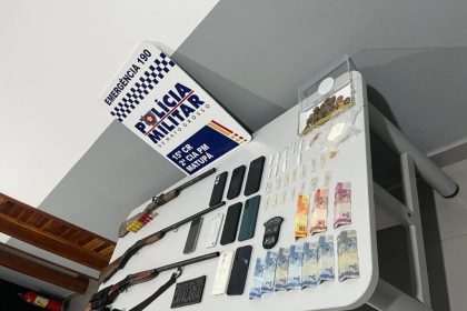 Cavalaria da PM prende três homens e apreende espingardas e drogas em Matupá