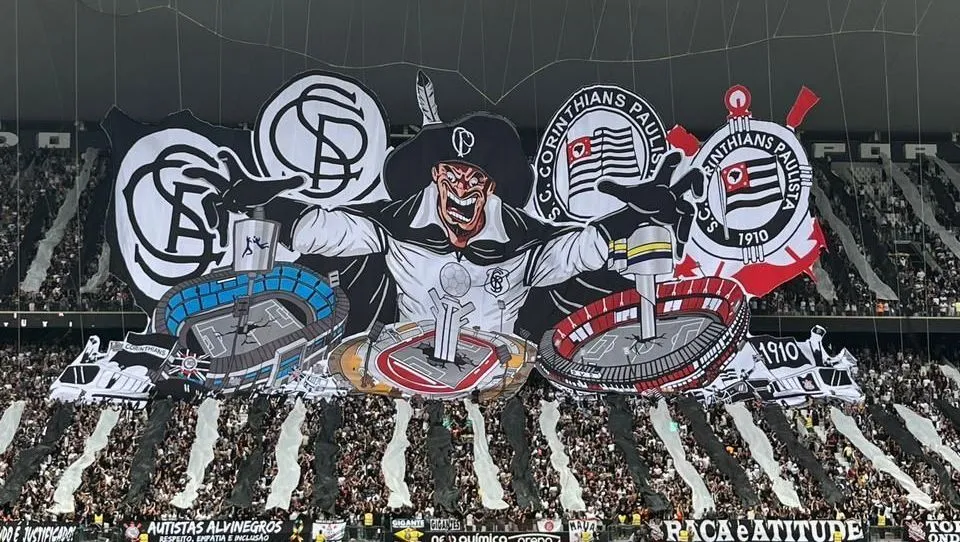 Mosaico realizado pela torcida do Corinthians na partida contra o Cruzeiro, válida pela semifinal da Copa do Brasil • Raul Moura/CNN Brasil