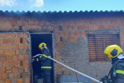 Bombeiros combatem incêndio em residência de Primavera do Leste