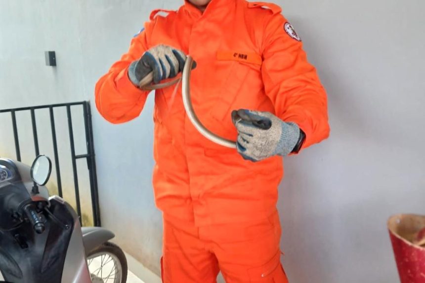 A equipe do 4º Núcleo Bombeiro Militar deslocou-se imediatamente após acionamento dos moradores. Identificou-se tratar-se de cobra cipó, espécie não peçonhenta e inofensiva aos seres humanos.