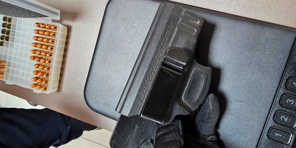 Descoberta no escritório A diretora administrativa acompanhou a ação. Logo, na mesa de trabalho de um funcionário, os policiais encontraram uma maleta tipo cofre. Dessa forma, dentro dela: 51 munições intactas calibre 9mm, 10 estojos deflagrados e 1 coldre. Com isso, todo o material foi lacrado e encaminhado à Politec.
