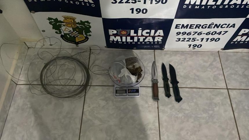 Policiais encontraram facas e arames utilizados para amarrar os reféns. Aproximadamente 500 gramas de substância análoga à maconha foram apreendidas. Todo material foi documentado como evidência para investigação.