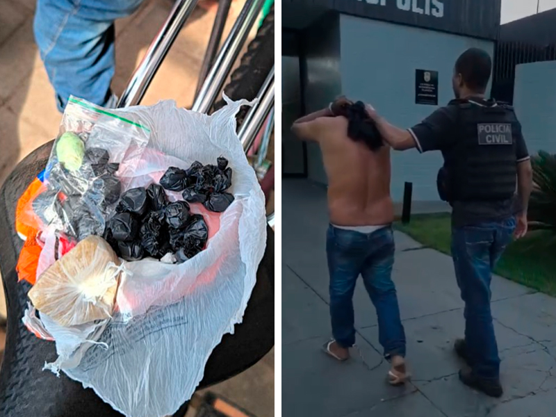 A Polícia Civil prendeu um suspeito de tráfico de drogas em Rondonópolis na terça-feira (14.04.2026). Agentes da Delegacia Especializada de Roubos e Furtos localizaram o homem de 43 anos em estacionamento de supermercado na Avenida Irmã Bernarda, Conjunto São José.