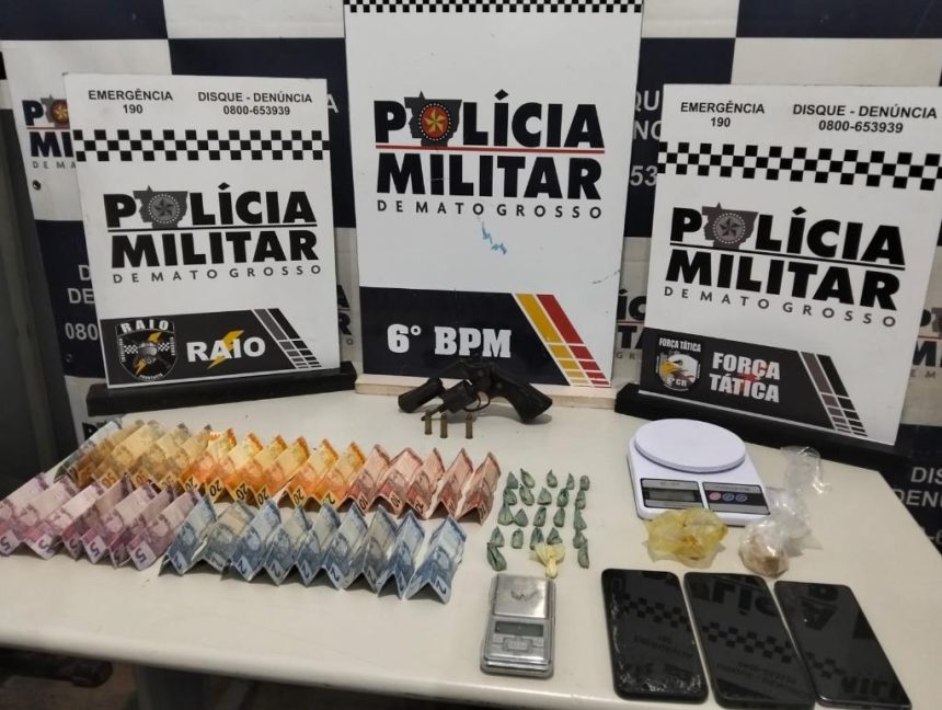 Durante a abordagem, os policiais encontraram um revólver calibre .38 com munições. Foram apreendidas 23 porções de pasta base de cocaína no imóvel.