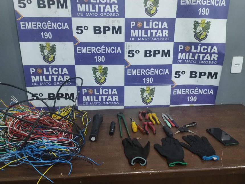 A Polícia Militar prendeu três homens na madrugada de terça-feira, 17 de março. A ocorrência foi registrada no Loteamento Alves, em Rondonópolis. Um vigilante denunciou o furto de fiação elétrica na Universidade Anhanguera aos policiais que faziam patrulha.